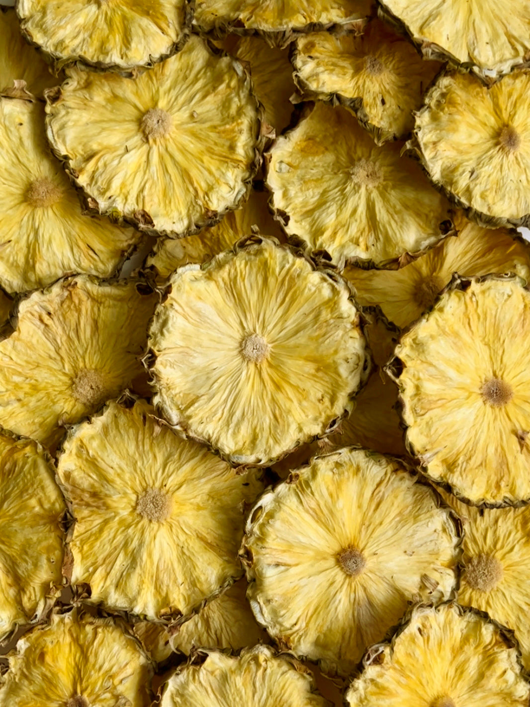 A tropical healthy delicious (AND beautiful!) snack for kids and adults! At FreshDried we use only certified organic pineapples grown chemical and pesticide free. Our soft dried pineapple slices are sweet and chewy contain no added sweeteners, chemicals or preservatives.